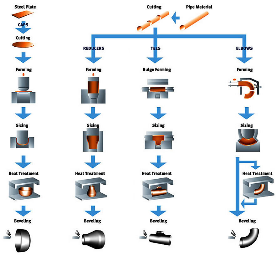 There are numerous processes for manufacturing butt weld fittings, several examples listed as follows.